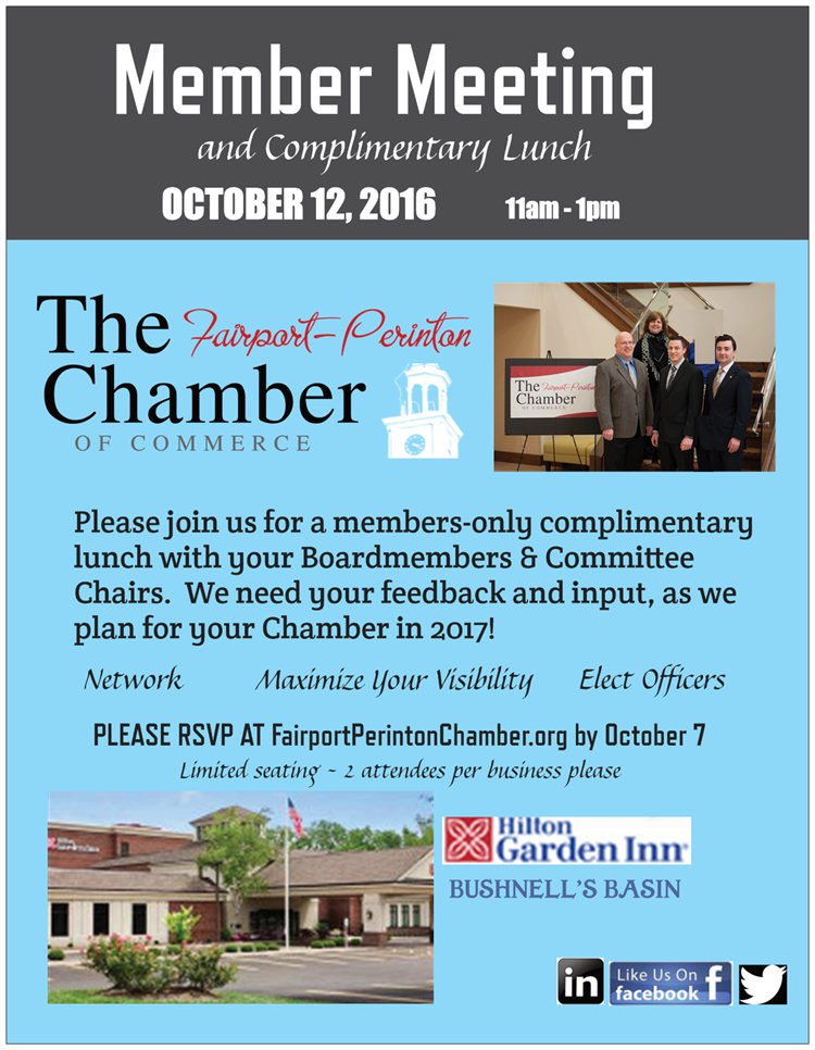 Please join us for a members-only complimentary lunch with your Boardmembers & Comittee Chairs. We need your feedback and input, as we plan for your Chamber in 2017!
